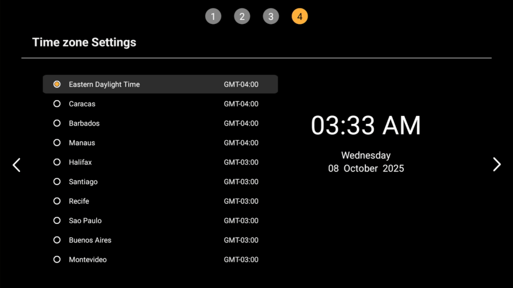 Use the Up/Down arrows on your remote to choose your preferred language for the system interface.