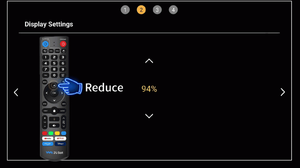 - Press and hold both the OK button and the Volume Down (-) button on the remote.