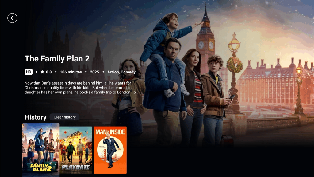Watch History: Conveniently track your recently watched content.